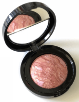 The second item is the Laura Geller baked blush-N-brighten in Tropic Hues. This is a $28 dollar blush. It is a beautiful peachy berry pink golden sheen blush. In the pan it looks like an intense pink shade but with my very fair skin it shows up peachy pink with a golden sheen. This blush is very pigmented so go light handed with it. If you don’t like shimmery blushes you won’t like this one. I do own an Elf baked blush in Passion Pink and if you build it up it looks very similar on the cheeks for a fraction of the cost. The Elf Passion Pink blush is a little pinker than the Laura Geller blush but on your cheeks both leave the same healthy glow.