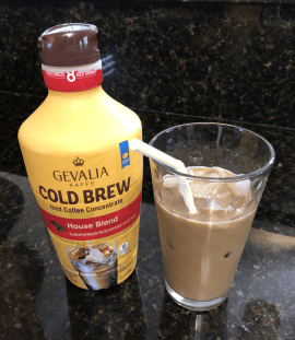 I was picking up Kcups from my local CVS early one morning and came across the Gevalia Cold Brew iced coffee concentrate. It costs $7.99 for a 32 FL OZ bottle. Now periodically it is on sale for $5.99. For $5.99 a bottle I can make coffee for almost two weeks. My closest coffee shop is Dunkin Donuts and the cold brew from there with milk and sugar is almost $3.