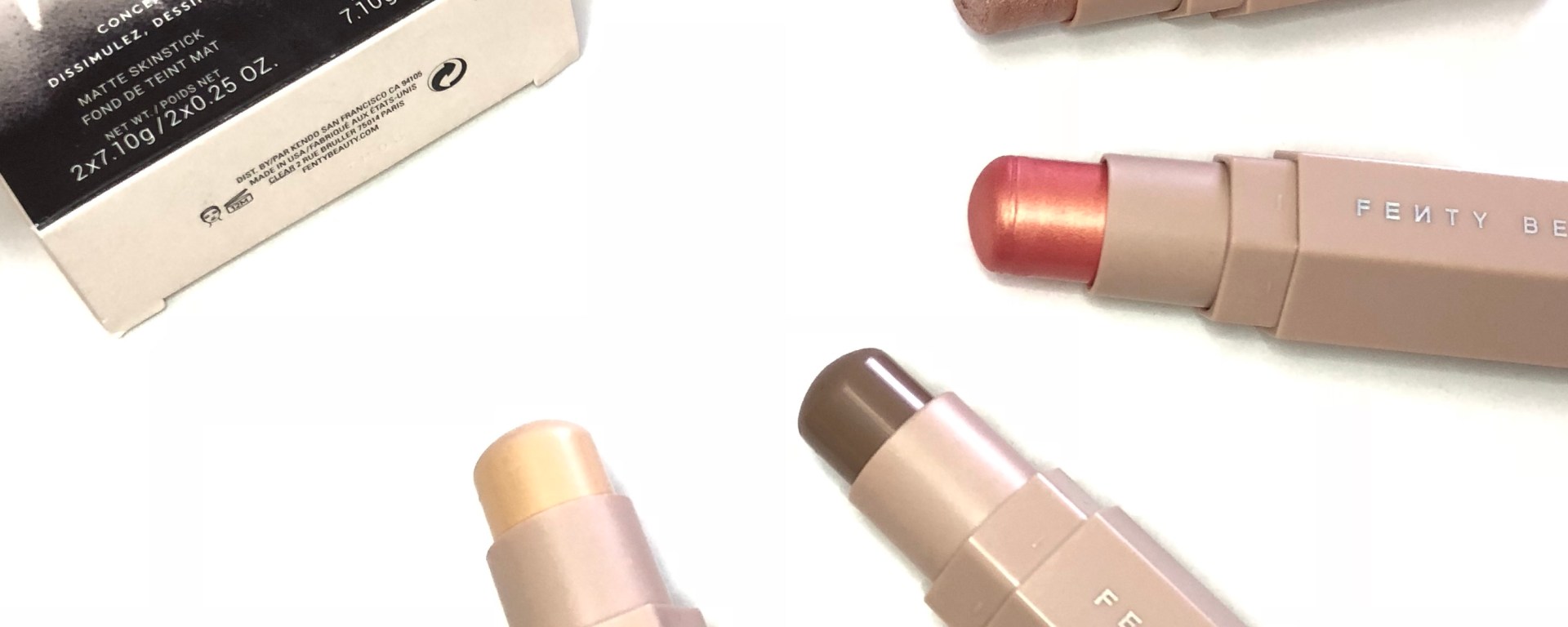 I had my eye on the Fenty Beauty Match Stix for a while. I’m always on the look out for good cream products and of course the packaging is absolute beautiful. I purchases the trio in Light 100 with the concealer, highlighter and contour stick and a blush in Yacht Lyfe.